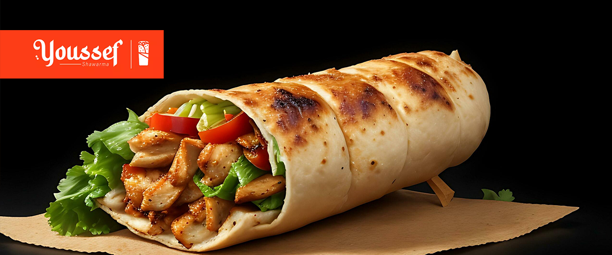 Pão sírio, carne bovina assada, carne de frango assada, alface, tomate, batata frita e molho de alho.